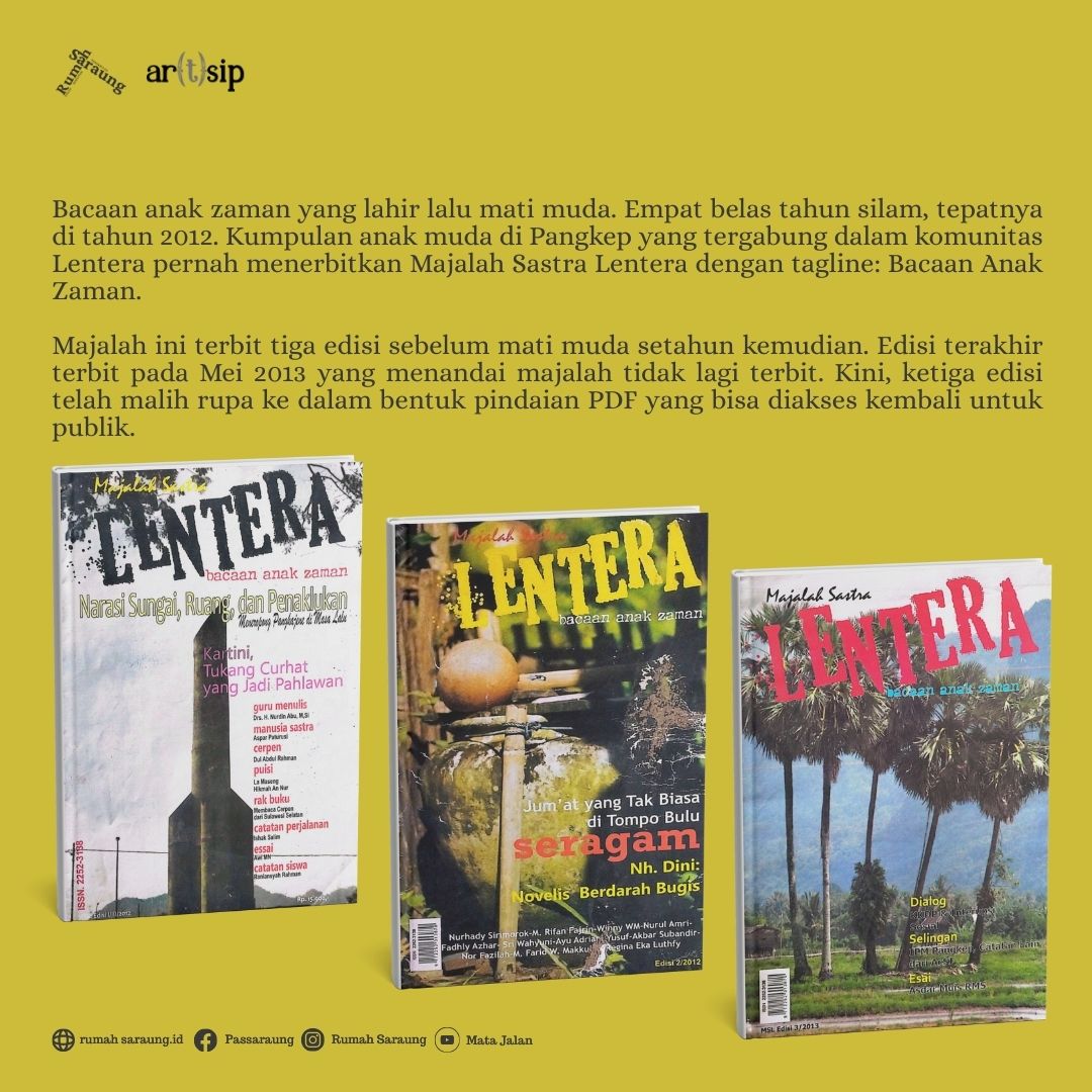 Empat belas tahun silam, tepatnya di tahun 2012. Kumpulan anak muda di Pangkep yang tergabung dalam komunitas Lentera pernah menerbitkan Majalah Sastra Lentera dengan tagline Bacaan Anak Zaman. Majalah ini terbit tiga edisi sebelum mati muda setahun kemudian. Edisi terakhir terbit pada Mei 2013 yang menandai majalah tidak lagi terbit. Kini, ketiga edisi telah malih […]